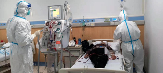 在医务处副主任袁莺的安排下,很快就将ICU、肾内科、护理部、黄码医院的专家拉了一个微信群,进行线上讨论,快速达成了共识:病人在黄码医院做血液透析,肾内科透析仪不够用,借用ICU的血液净化仪,这台机器ICU医生护士有使用经验,尽管ICU人员很紧张,派专门医护过来;肾内科对透析插管熟练,支援人来插管和对于病人用药和治疗评估指导;黄码医院人员负责病人病情监测、其他治疗和病案及医疗文书书写记录。