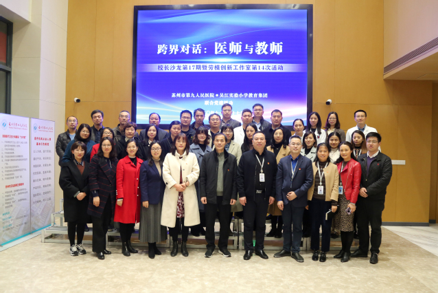 此次活动的主题是跨界对话:医师与教师。活动由吴江实验小学教育集团副总校长沈伟英主持,参会的嘉宾有:吴江实验小学教育集团总校长张菊荣、吴江实验小学教育集团党委书记迮美娟、苏州九院副院长郎建华、吴江实验小学教育集团各校区校长和跟岗校长、以及苏州九院部分中层干部、青年优秀人才、团干部等20余人。