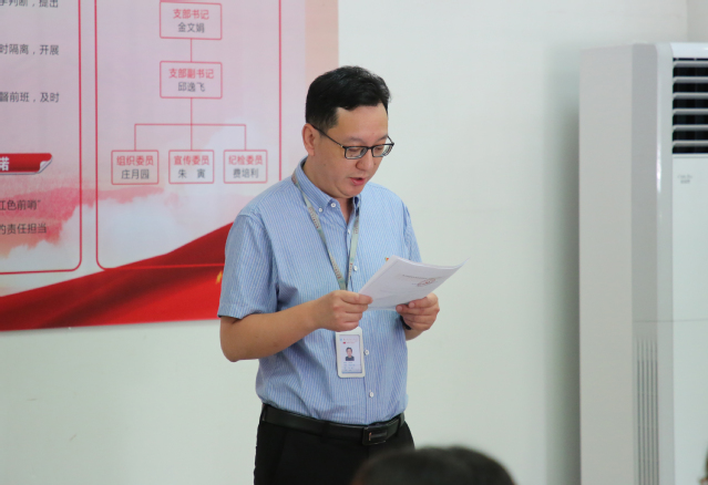 苏州九院党委委员、副院长金建清主持授旗仪式并宣读了成立临时行动支部的文件。他指出,今年是实施“十四五”规划的第一年,也是开启全面新冠疫苗接种工作的关键之年,希望临时行动支部的广大党员在工作中敢担当,勇带头,作表率,充分发挥先锋模范作用。