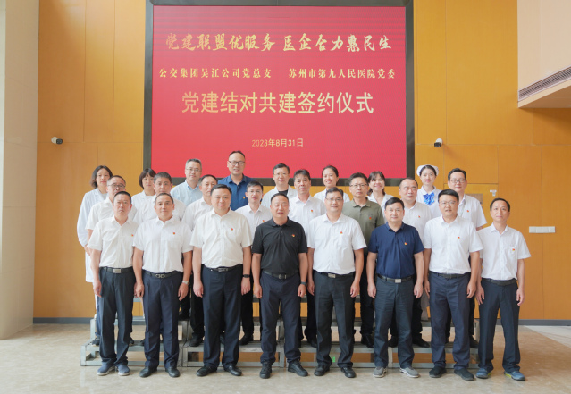 委员会举行结对共建签约仪式。公交集团总经济师、公交集团吴江公司党总支书记、董事长薄祥许,公交集团吴江公司党总支副书记、副总经理卞劲松,吴江区卫健委党委书记、主任、苏州九院党委书记沈宇,苏州九院党委副书记、副院长沈根海,苏州九院党委副书记、纪委书记庾勍等出席活动。