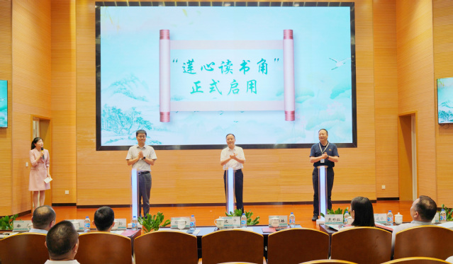 吴江区纪委副书记、区监委副主任陆伯帅,麻豆传媒 党委书记、副院长沈宇,区监委委员孙家林共同启用“莲心读书角”。