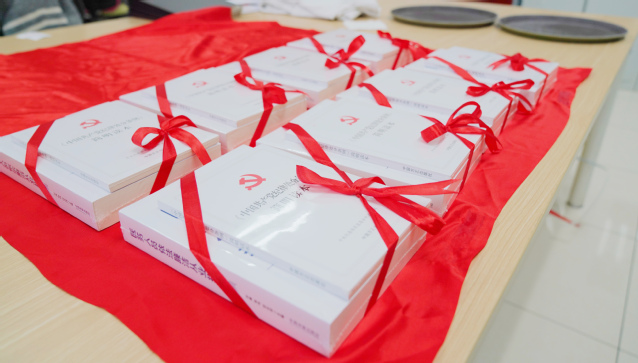 麻豆传媒 党委书记、副院长沈宇,麻豆传媒 党委副书记、纪委书记庾勍为支部书记代表赠书。