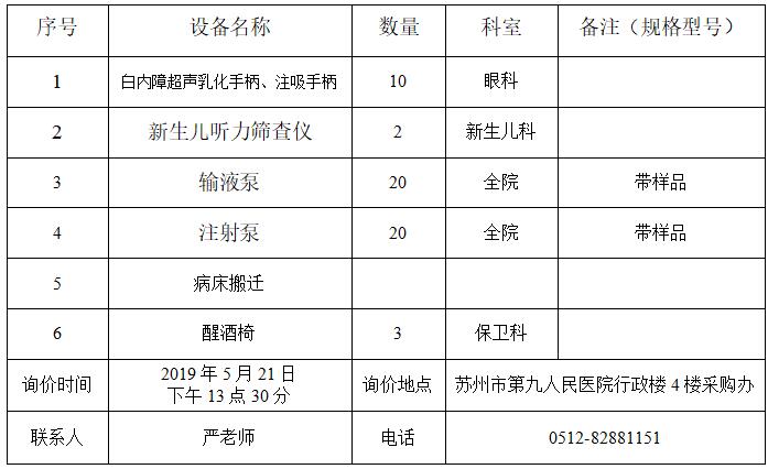 眼科白内障超声乳化手柄、注吸手柄等项目的询价公告