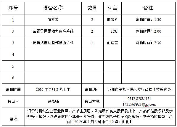 血栓泵等项目的询价公告