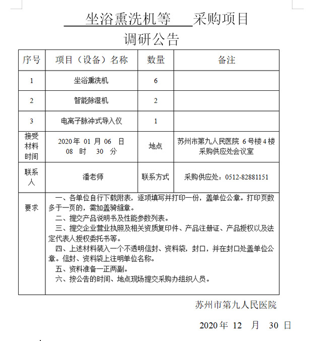坐浴熏洗机等采购项目调研公告