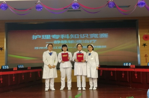 此次比赛以《2016版美国INS输液指南》、《苏州市静脉治疗护理临床实践指南》、《卫生部静脉治疗操作规范》内容为准则,分海选赛、对决赛、风险赛、决站赛四个环节进行,期间准备了观众抢答赛,答对者有小礼品赠送。