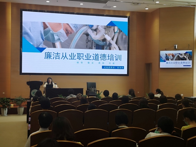 为增强法纪知识和廉洁自律意识,创造风清气正的护理工作环境,更好地服务于临床工作,5月27日,护理部在行政教学楼3楼学术报告厅对全体护士长开展了一场廉政职业道德培训,邀请纪检监察室主任周雪萍为大家授课。