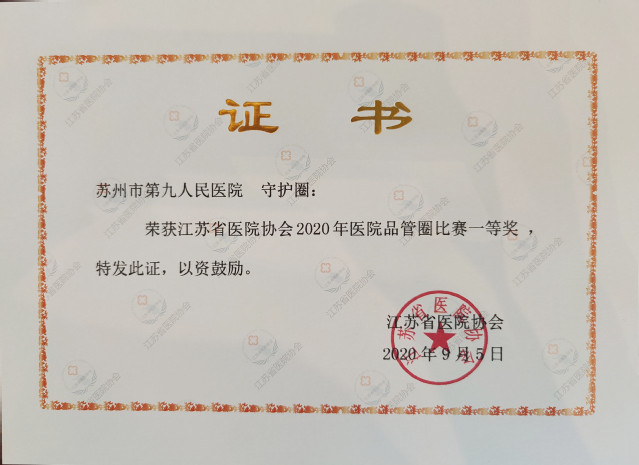 骄人的成绩,记录的是继承发展、改革创新的铿锵步伐;胜利的硕果,承载的是诚信、敬业、团结、创新的院训。苏州九院人将以此次品管圈比赛为契机,进一步有效开展品管圈活动,解决工作中的实际问题。