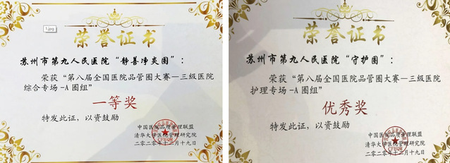 在刚刚结束的第八届全国医院品管圈大赛上,苏州九院护理部“静善净炎圈”获得三级医院综合专场—A圈组一等奖、“守护圈”获得三级医院护理专场—A圈组优秀奖。
