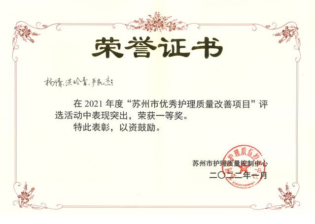 “苏州市优秀护理质量改善项目”评选活动中