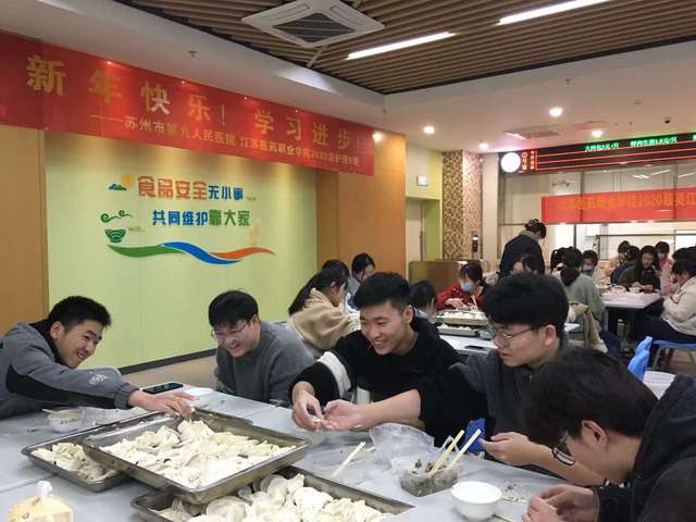 12月25日,在主管教育和后勤领导的关心支持下,同学们在食堂举办了包饺子活动,迎接新年的到来。包饺子的时候,同学们和食堂大师傅近距离交流,熟悉吴江风土人情,真正感觉到融入吴江的快乐生活,释放了学习压力。同学们也终于放下沉重的学习负担,自己动手,丰衣足食,在学习厨艺,提高生活技能的道路上有了美好的憧憬。