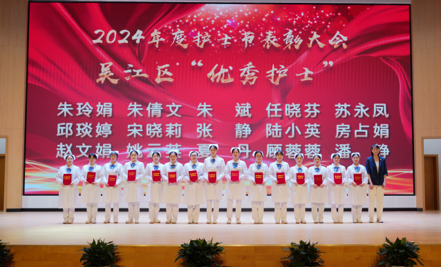 举行庆祝“5.12”国际护士节表彰大会,表彰先进典型、激励更好前行,营造浓郁的关爱护士、逐梦健康的节日氛围。苏州九院党委书记、副院长沈宇出席并讲话,院党委副书记、副院长沈根海致辞。吴江区卫健委副主任薛建英,医院党委副书记、纪委书记庾勍,副院长戴彩红、朱卫国、郎建华、徐元、金建清参加活动。