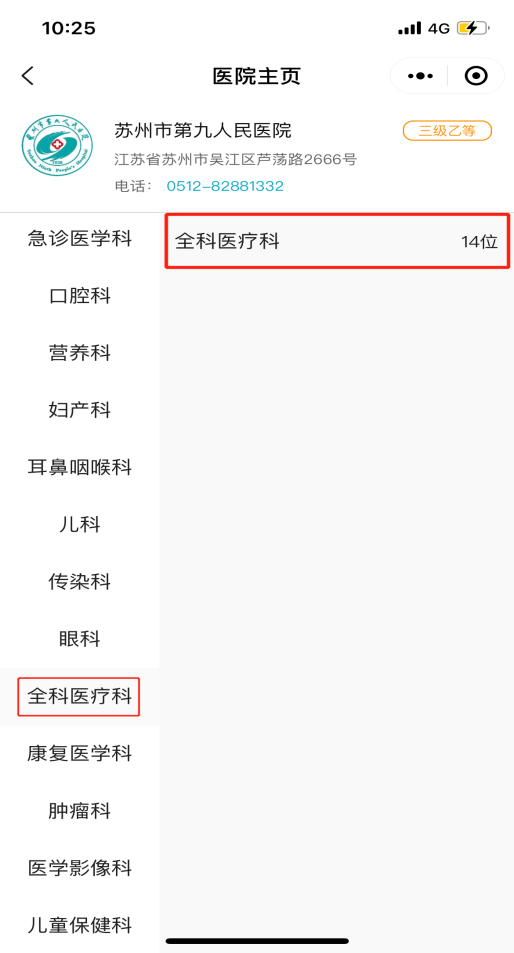 3.选择【线上复诊】,用户需要先进行注册,在江苏健康通app或公众号上注册并认证过的用户可以直接登录,用户名为手机号,登录后可选择【全科医疗科】。