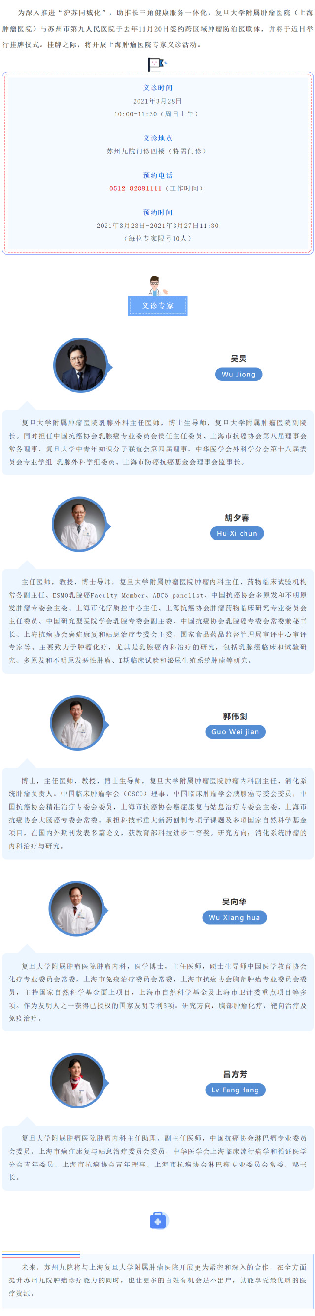 践行沪苏同城化 上海肿瘤医院专家来苏州九院义诊
