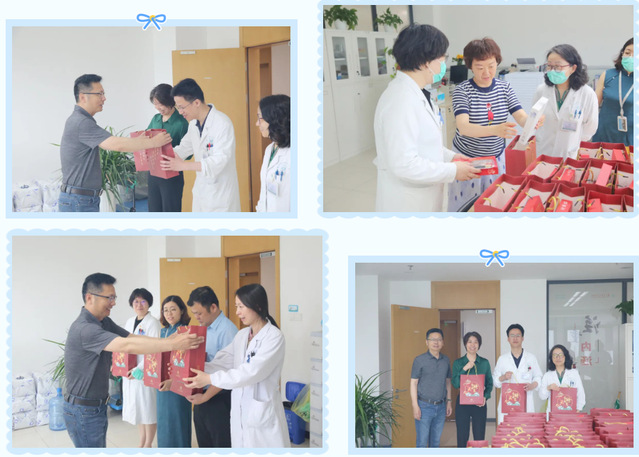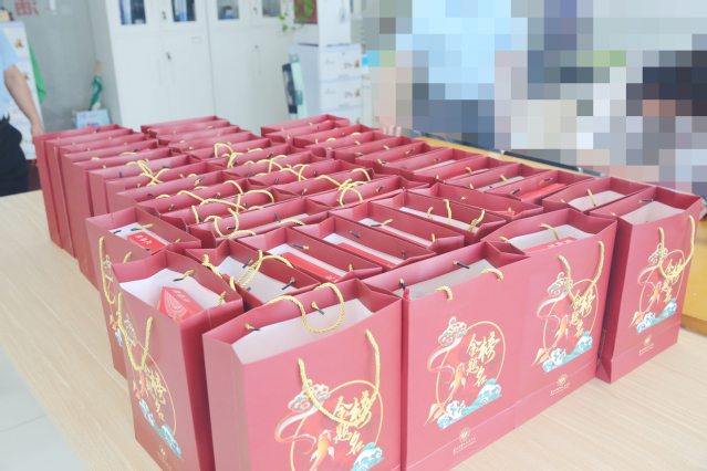 经过前期摸排,医院有近60名员工的子女将参加今年的中高考。高考前夕,在医院副院长、工会主席张群雄的带领下,工会为即将参加中高考的医院职工子女送上了寓意“高中”的“糕粽”礼盒,还特别定制了祝福礼袋,为考生助力加油。