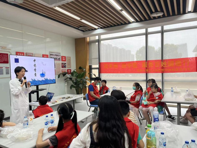 教室里弥漫着中药的清香,孩子们在药香的浸润下,学习、实践,感受中医药文化的魅力。