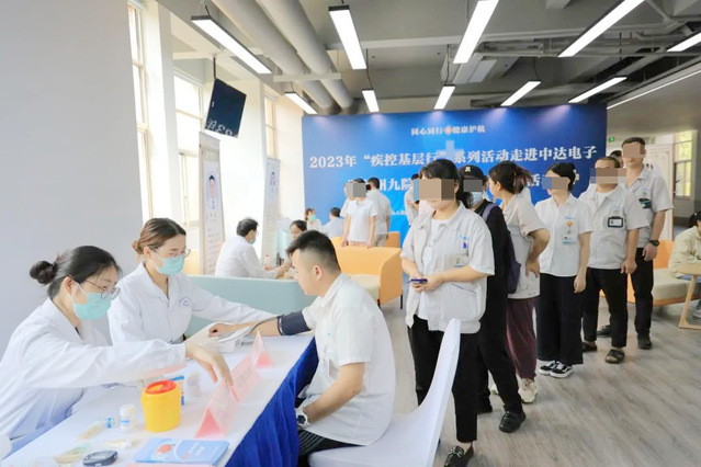 签约仪式后,苏州九院还在中达电子开展了爱心义诊活动。此次义诊包含中医呼吸科、中医内科、中医消化科和五官科。医护工作者耐心细致的为职工把脉问诊,答疑解惑,并结合个人情况提出诊疗建议、日常生活注意事项,并为长期用药的职工进行用药指导。活动现场还为职工提供免费的血压测量等体检项目。此次义诊活动提升了员工的健康意识,有效提高了职工的健康意识和自我保健能力,获得了职工们的一致好评。