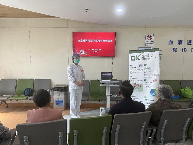 苏州九院充分利用广播、墙报、黑板报等形式进行科普宣教,让患者及其家属充分认识到透析期间控制体重增长的重要性,通过科学的知识,推动学习型医院科普的建设,让患者积极参加科普活动。以专业为主线,挖掘各种蕴含于专业教学、生活习惯,耳濡目染,自然地渗透到血液透析,使最基本的体重增长看得见,摸的着。