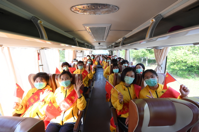 车还没停稳,白衣勇士们就急急忙忙透过车窗向外面张望,试图在人群中找到那熟悉的脸庞。然而,车一停,大家却收敛了情绪,排着队依次下车,接受来自家乡人民的鲜花和礼赞。