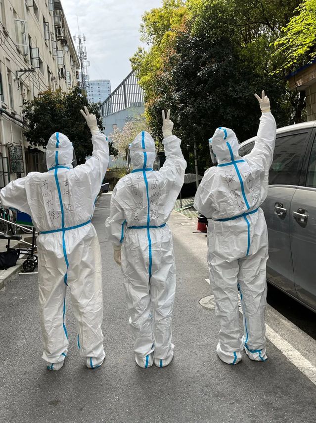 3月30日,我们几个“大白”正坐在上海市浦东新区潍坊三村小区一处相对偏僻的绿化带旁边的花坛边休息,刚采了一上午的核酸,本想边休息边等待社区书记给我们列出需要上门的居民人数及位置。当我们正在讨论着今天任务的完成情况,这时走来几位小区里面的老人们,他们问我们是上海哪个医院的,我们笑笑,指了指贴在身上“苏州医护”的贴纸,老人们连连发出赞许,说:“辛苦你们了,太感谢你们了……”然后就发生了开头的一幕。