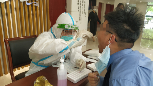 依稀记得在这次疫情中,第一次接到采核酸任务是2月16日的晚上,那天气温很低,还下着雨夹雪,到了社区边采样边进行手消毒的时候,觉得手都冻麻了。转眼到了4月12日,援助太仓进行采样,那天顶着33度的高温,穿上大白,往采样棚里一坐,就浑身冒汗,又碰上信息输入系统故障,从早上6点半一直工作到下午1点半,采样任务结束后,浑身都湿透了,这次同是医务人员的爱人接到4月18日去黄码医院的任务,我就报名去了封控区的闭环任务,没想到我还比她早出发了一天。4月17日,我来到了封控区,开始扫楼,为每一户居民上门采核酸。在这次任务的16天中,体验到了领队的艰辛,不单要完成采样工作,还要进行一些相关工作的协调。